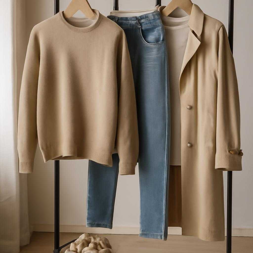 Для нательного слоя я выбираю мягкие ткани с ровной поверхностью и без грубого ворса. Хорошо работают хлопковые полотна, которые держат форму после стирки и не становятся жесткими. Полезно проверить не только состав на ярлыке, но и сам материал руками: ткань не колется, не скрипит, не оставляет ощущения пленки. Слишком плотное полотно перегревает, слишком рыхлое быстрее растягивается и теряет посадку.