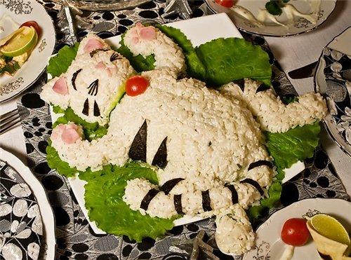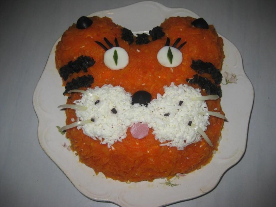 Классический салат Оливье в виде Тигра